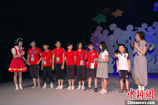 7月7日晚,來自臺(tái)灣的小朋友還收到了一份“棒棒TV”送出的特別禮物。參加“2010·陽光海峽——兩岸快樂小天使活動(dòng)營”的小營員們?cè)诟=ㄈ嗣袼囆g(shù)劇院觀看由福建當(dāng)?shù)毓?jié)目“棒棒TV”全體主持人首次獻(xiàn)演的兒童劇《我和我的影子》。曾偉 攝