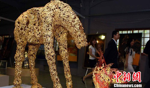 中國工藝美術大師朱炳仁與臺灣雕塑藝術家楊奉琛“兩岸雙人藝術展”,7月22日在臺北華山創意文化園區開幕,兩人試圖通過展出的6件聯手創作、60件各自獨立創作作品,揭示兩岸民間文化交流在兩岸重大事件中扮演的獨特角色,向世界展示中華文化博大精深的魅力。