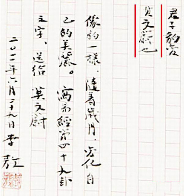 李敖親自寫“君子豹變、其文蔚也”(紅線處)送她當禮物。圖片來源:臺灣媒體