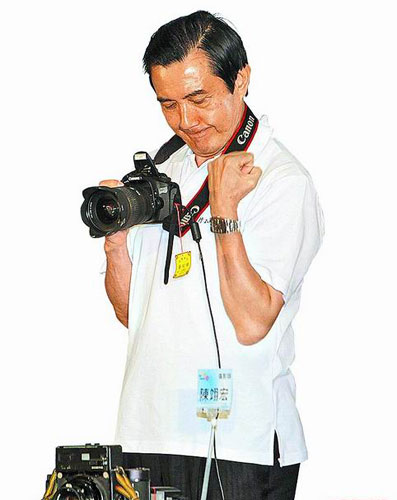 馬英九在攝影師陳翊宏指導下學拍照,陳嚴肅的要求馬英九要“雙手夾緊,身體站直”,馬英九一聽立即右手握緊相機,左手臂大動作的貼緊腋下,引來現場大笑。馬英九先把相機對準媒體說:“我要拍那些平常在拍我的人。”說完便與攝影記者互拍起來。