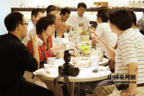 兩岸網絡媒體人在臺灣小吃的“滿漢全席”中盡情交流。(來源:臺灣蕃薯藤網站)
