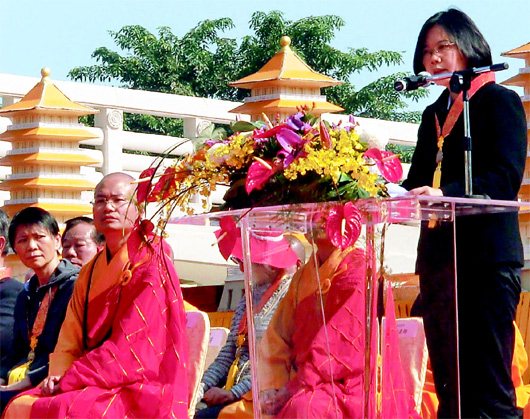 蔡英文指出,佛光山將佛教良善精神,用各種方式深入人間,對凈化人心、建立健康、正向的社會價值有很大的影響力。