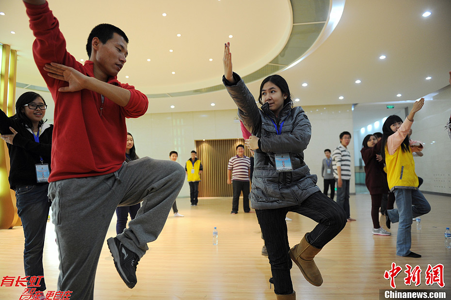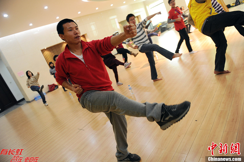 12月26日,在陜西師范大學校園內,百余位來自印尼、巴拿馬和新西蘭的華裔青少年在武術老師的指導下,沖拳劈掌、騰躍踢腿,練得有模有樣,其年齡絕大部分在12至15歲之間。據介紹,此次活動是“2012年海外華裔青少年中國尋根之旅”的一部分,意在通過修習傳統武術、感悟國粹真諦。圖為痛苦的“蹲馬步”。中新社發 張遠 攝