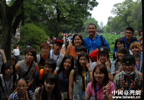 中國臺灣網7月8日蘇州消息 7月7日,臺灣中華兩岸少數民族知識經濟交流協(xié)會夏令營團走進蘇州,參觀江南名園——拙政園、千年古剎——寒山寺和吳中第一名勝——虎丘。盡管時值酷暑,戶外參觀實在是一件很辛苦的事情,但同學們還是興致盎然,談笑風生,手中的相機忙個不停。