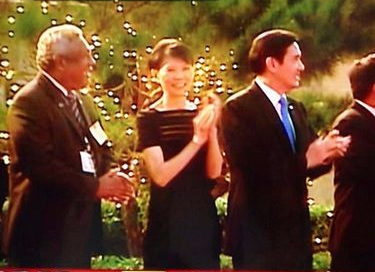 表演團(tuán)體穿過臺(tái)前,對著馬英九打招呼,這時(shí)候馬英九還在低頭看資料,渾然未覺,夫人發(fā)現(xiàn),立刻用力頂了馬英九的手臂,馬英九這才趕緊擠出笑容,揮手致意,但可能是與王金平會(huì)面,氣氛實(shí)在太緊張,馬英九不斷猛摳手指,還有點(diǎn)恍神,這時(shí)周美青又再度撞了撞馬英九的手肘,要他往前看,周美青不斷跟王金平聊天,一旁的馬英九超好奇,不斷靠過去想偷聽他們在說什么。