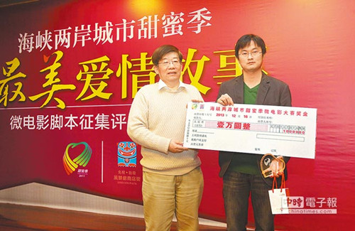 據(jù)臺灣《旺報》報道,第三屆兩岸城市甜蜜季愛情微電影故事評選結果揭曉,16日在廈門日報社舉行頒獎儀式。