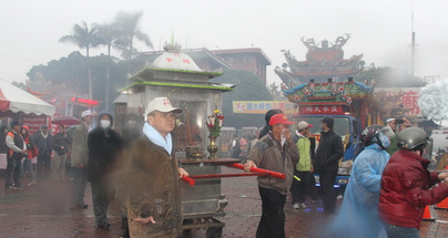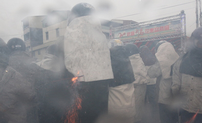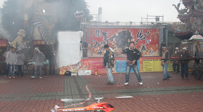 中國臺灣網2月13日消息 據臺灣媒體報道,為期2天2夜的元宵節臺南鹽水蜂炮,于今日上午8時在鹽水武廟正式啟炮。不過因為下雨,直升機啟炮作業并不順利,直升機飛到半空中鞭炮突然熄火,3度經由工作人員點燃后仍熄火,最后只好作罷。