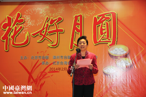2014年2月13日,臺盟中央副主席、北京市臺聯會長蘇輝代表主辦單位向嘉賓致以節日問候。(中國臺灣網 楊永青 攝)
