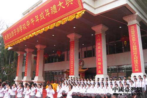 3月28日,東莞臺(tái)商子弟學(xué)校舉辦甲午年成年禮大典。典禮過程依據(jù)古代周禮中士冠禮、士相見禮與相飲酒禮之精神而設(shè)。在經(jīng)過佩冠禮等儀式后,共有190名臺(tái)商子弟授冠成年。此次成年禮活動(dòng)除傳承中華文化古禮,讓學(xué)生意識(shí)到成年負(fù)責(zé)的過程之外,更不斷創(chuàng)新,融入感恩教育與生活教育,對(duì)于海峽兩岸(粵臺(tái))中等教育論壇主題來說同樣是一個(gè)最好的范例。(中國臺(tái)灣網(wǎng)、東莞市臺(tái)辦聯(lián)合報(bào)道)