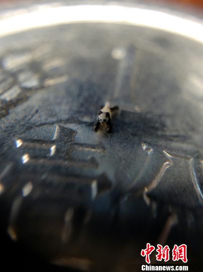 大陸贈(zèng)臺(tái)大熊貓團(tuán)團(tuán)圓圓的后代圓仔給臺(tái)灣民眾帶來(lái)了歡樂(lè),也成為臺(tái)灣藝術(shù)家表現(xiàn)的對(duì)象。近日,臺(tái)灣著名微雕家陳逢顯創(chuàng)作一只“微雕熊貓”,只有0.5毫米長(zhǎng)。