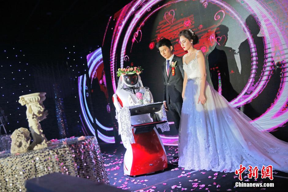 天津現智能機器人“伴娘” 見證新人幸福時刻