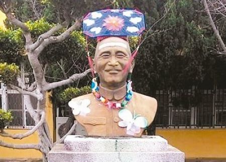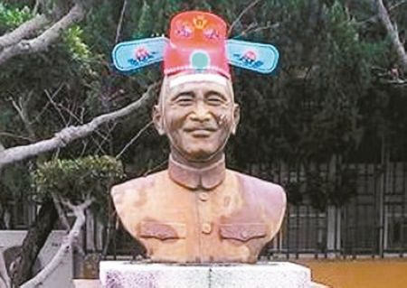 據臺灣《聯合報》報道,苗栗縣銅鑼鄉興隆小學的蔣介石銅像在去年圣誕節變身圣誕老公公后,從此每周都由學生設計、變換新造型,如今已扮過狀元郎、太后等,成為“百變蔣介石”,不但時時激發師生的創意,還成了吸引游客拍照的新景點。