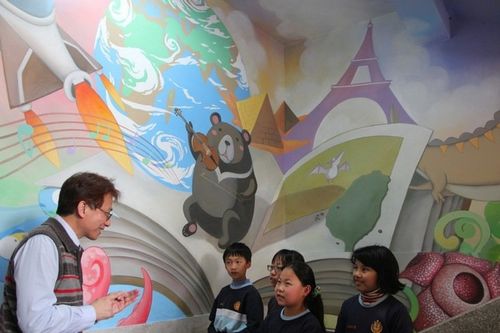 北斗小學(xué)營造“開卷有益彩繪廊道”,希望小朋友從廊道走上圖書室,汲取自然、天文、地理等多樣知識(shí)。來源:臺(tái)灣《聯(lián)合報(bào)》