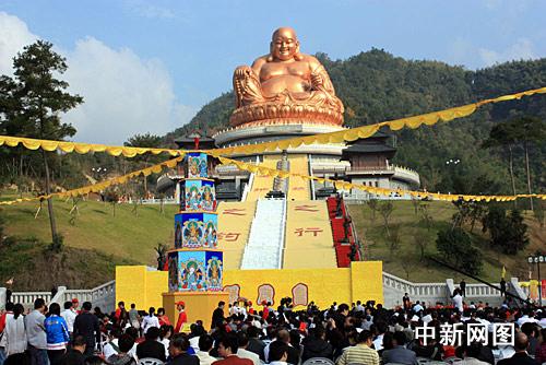 中新網寧波10月26日電(記者 張慧慧 徐小勇 何蔣勇)今天上午,2009中國(奉化)雪竇山彌勒文化節開幕式暨雪竇寺四大天王開光法會在浙江奉化隆重舉行。來自包括香港、澳門及臺灣在內的兩岸三地政界、商界、文化界、演藝界、佛教界、旅游界及新聞界3000多名海內外著名人士云集奉化,參加此次活動。
