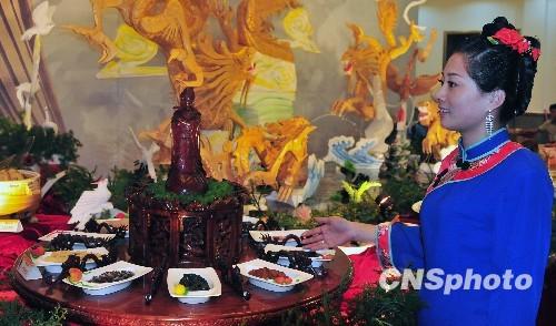 11月2日晚,“媽祖宴”獻(xiàn)禮“兩岸千人頌媽祖”活動(dòng)信眾,其精致程度讓海內(nèi)外信眾嘆為觀止。宴菜結(jié)合媽祖?zhèn)髡f、典故、封號和祥瑞之語等進(jìn)行命名,以期感悟文化中得平安。“媽祖宴”在今年10月獲得第四屆搜廚國際烹飪大賽團(tuán)體金獎(jiǎng)。圖為“媽祖宴”最新菜式“恩澤寰宇”。 中新社發(fā) 張麗君 攝