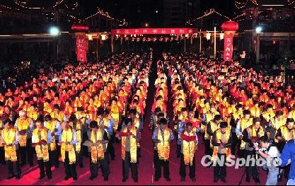 祭典結(jié)束后,一千名兩岸信眾代表整齊排列在懿明樓廣場,身披綬帶,同聲朗頌《湄洲媽祖金身巡安興化頌文》、同唱《媽祖之光》。在祭典上,由兩岸共同舉辦的“兩岸千燈迎媽祖”、“兩岸千人頌媽祖”、“兩岸千品貢媽祖”等活動(dòng),尤為引人注目和稱道。