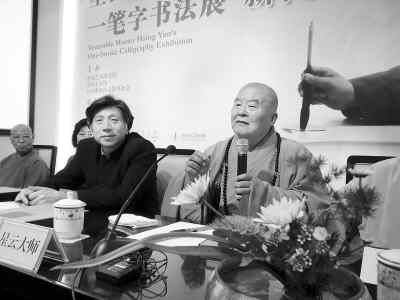 盡管星云大師從未正式練過書法,但因弘法的需要一寫就是40年。“一筆字”書法的由來是因為40多年前,星云大師罹患了糖尿病,近些年由此引發的并發癥使得視力日益模糊,看書寫字受到了很大的影響。星云大師在題字時只能用心揣摩出字與字之間的距離,一下筆一蘸墨就要一揮而就,不管這句話有多少字都要一筆完成,否則不知道第二筆從何下筆。(記者趙永琦)