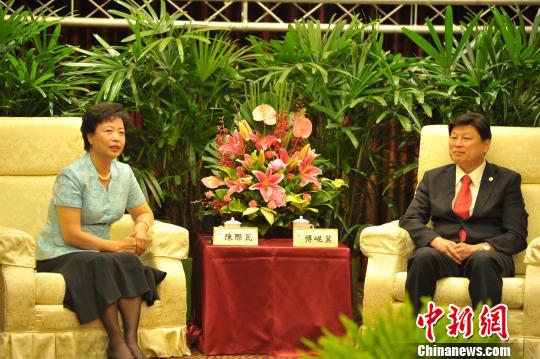 廣西壯族自治區政協主席陳際瓦會見花蓮縣長傅崐萁。 孫潔 攝