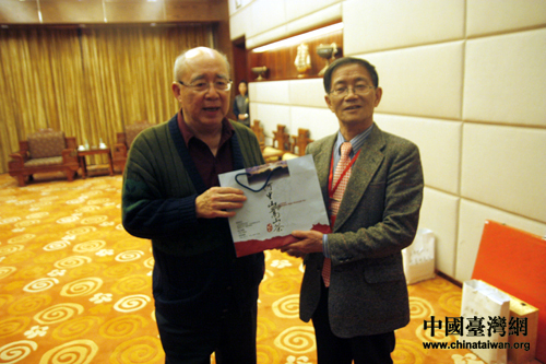 北京聯(lián)合大學(xué)教授徐博東是大陸知名臺(tái)灣問題研究專家,他與湖南師范大學(xué)文學(xué)院黃志平教授合作撰寫的《丘逢甲傳》一書,詳盡介紹了中國近代客家籍的著名反割臺(tái)抗日愛國志士丘逢甲光輝的一生,在海峽兩岸有較大影響。兩位教授向吳伯雄贈(zèng)送了修訂版的《丘逢甲傳》,徐博東教授并向吳伯雄贈(zèng)送了他從事臺(tái)灣問題研究20余年的文集《臺(tái)海風(fēng)云見證錄》。