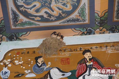 赫圖阿拉城屋里的一窩小燕子吸引了大家的注意。(中國臺灣網(wǎng) 吳曉寒 攝)