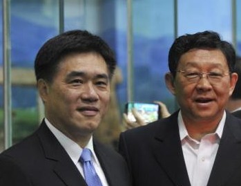 海協(xié)會(huì)會(huì)長(zhǎng)陳德銘一行結(jié)束臺(tái)灣行,今日返京。圖為陳德銘會(huì)長(zhǎng)(右一)與臺(tái)北市長(zhǎng)郝龍斌(左一)合影。(網(wǎng)絡(luò)圖)