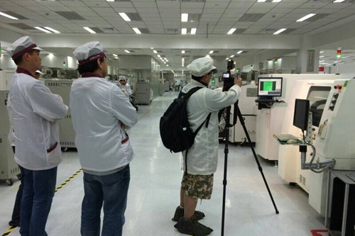 臺灣記者采訪緯創(chuàng)科技有線公司生產(chǎn)線。
