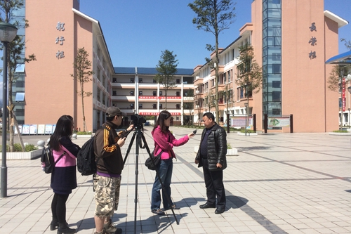 臺灣記者在臺灣同胞援建項目嚴(yán)道第一初級中學(xué)采訪。