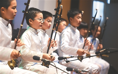 南京夫子廟小學昨日舉行聚星聯盟“相約金陵”音樂會。夫子廟小學管樂團和國樂團、臺灣文化國小管弦樂團、澳大利亞車士活小學合唱團的同臺演繹,精彩紛呈。 新華報業視覺中心記者 邵 丹攝