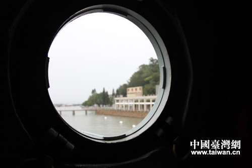 日前,記者登上東海艦隊(duì)某退役獵潛艇,用相機(jī)揭開(kāi)它的神秘面紗。圖為舷窗外的港口。(中國(guó)臺(tái)灣網(wǎng) 馬迪 攝)