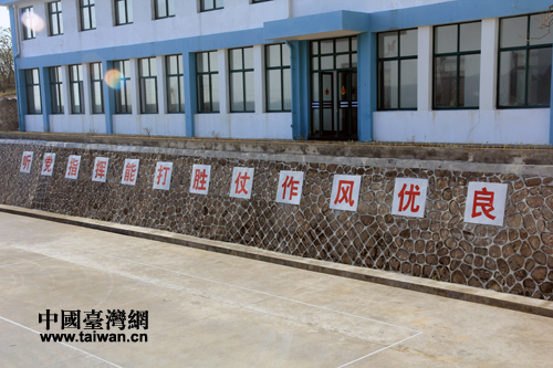 日前,記者隨“萬里海疆巡禮”采訪團登上位于浙江省東南海域的南麂列島主島——南麂島,探訪東南沿海一線官兵的工作生活。圖為戰士們親手所寫的標語。(中國臺灣網 馬迪 攝)