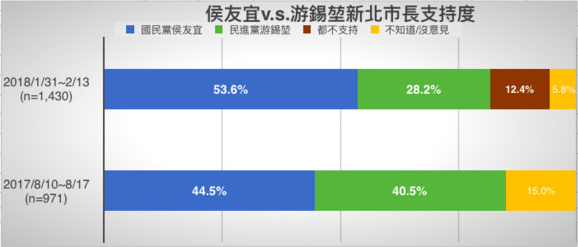 據(jù)報道,針對2018新北市長爭霸戰(zhàn),“東森新聞云”于今年1月31日至2月13日便啟動“新北市長選情大調(diào)查”。調(diào)查分析發(fā)現(xiàn),設(shè)籍于新北市的民眾,不管侯友宜對上任何民進(jìn)黨對手,即便是“天王級”人物,都能拿下超過50%的高支持度。