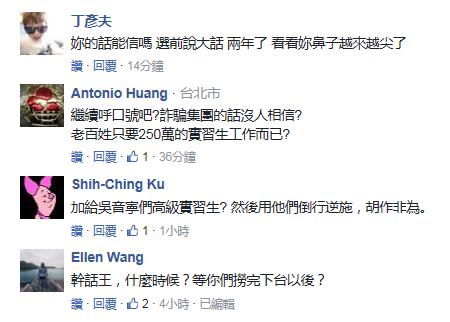 但,遺憾的是,島民體感與蔡大小姐及其幕僚口中的“政績”那是截然相反啊,有人直嗆蔡英文“你的話能信嗎”、“除了惡心就是無恥”;有人表示民進黨堅持錯誤的政策根本就是“視勞工為無物”;還有人直言要用選票教訓說一套做一套的民進黨。