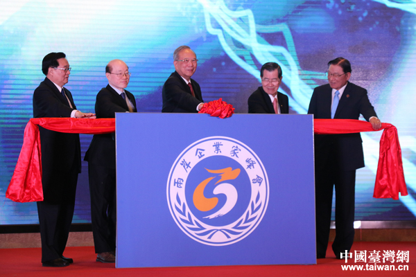 曾培炎、蕭萬長、江丙坤、王國生、劉結一共同啟動論壇開幕裝置。(中國臺灣網 張亞靜 攝)