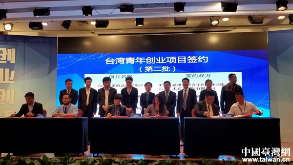 在今天下午召開的大會中,全國溫州商會總會新生代溫商工作委員會與“筑夢溫州”臺灣青年聯誼總會簽訂合作協議,建立起溫州與臺灣青年之間人才合作、交流聯誼的平臺。對接會現場,影視文化、創意園區、高新技術、商貿、健康等領域的6個臺灣青年創業項目成功簽約。此外,3位臺灣青年代表也與溫州市用人單位現場簽訂就業意向。