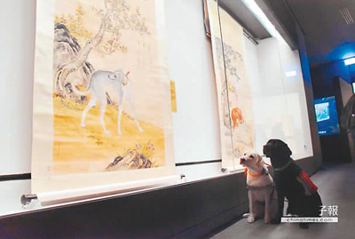 1月29日的開展儀式上,臺北故宮博物院還請來3只導盲犬進入展廳,讓畫犬、真犬相見歡。除了警犬和輔助犬,狗兒一般不被允許進入博物館內。當導盲犬牽引著服務對象來到郎世寧的《十駿犬》畫作前時,畫面相當溫馨有趣。