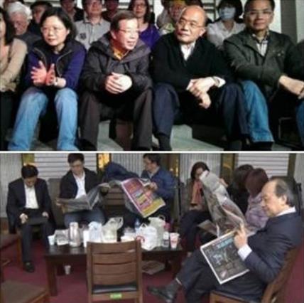 有粉絲專頁分享兩張民進(jìn)黨同樣“守”在“立法院”的照片。(圖片來源:臺(tái)灣《中時(shí)電子報(bào)》)