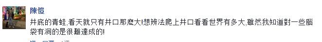 通過兩岸跨年的明星陣容其實不難看出,幾乎所有炙手可熱的一線明星都選擇到大陸演出,但有些臺灣網友似乎不這么認為,“大陸請的都是臺灣過氣歌手,他們就是搞不懂新鮮的品味”,結果被懟是“開醋廠的”、“井底之蛙”。