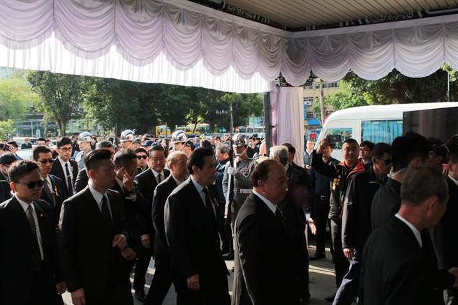 公祭現(xiàn)場,前臺灣地區(qū)領(lǐng)導(dǎo)人馬英九、臺當(dāng)局前“行政院長”郝柏村、前“國防部長”高華柱、臺軍前陸軍中將副司令吳斯懷、國民黨主席吳敦義陸續(xù)到場致意。