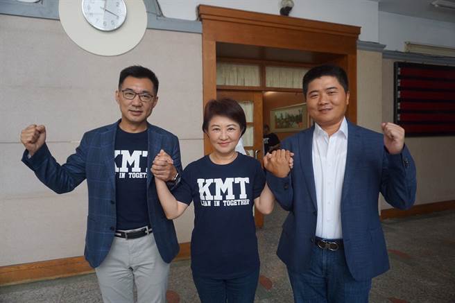國(guó)民黨籍“立委”江啟臣(左)、顏寬恒(右),24日宣布擔(dān)任黨籍臺(tái)中市長(zhǎng)參選人盧秀燕(中)競(jìng)選總部主委及總干事。(圖片來(lái)源:臺(tái)灣《中時(shí)電子報(bào)》)