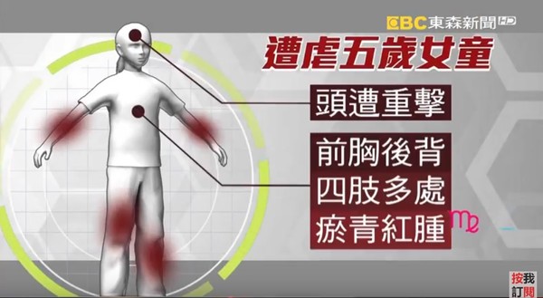 5歲女童疑被姨夫性虐致死。(圖片來源:臺灣“東森新聞云”)