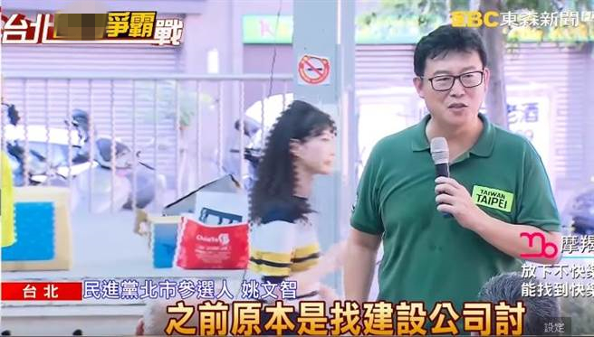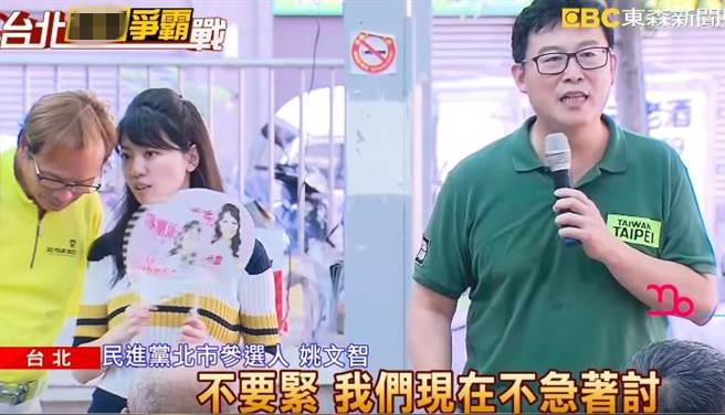 有網友翻出綠營北市議員高嘉瑜跟姚文智站臺的畫面,只見高嘉瑜不斷閃躲,讓網友笑翻。(圖片來源:臺灣《中時電子報》)