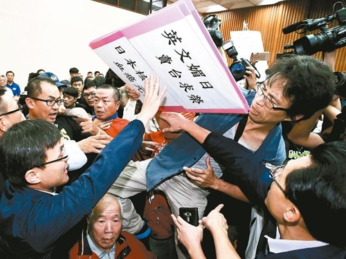 據(jù)臺(tái)灣《聯(lián)合報(bào)》報(bào)道,臺(tái)當(dāng)局“農(nóng)委會(huì)”12日在云林、嘉義、臺(tái)南、高雄連趕4場(chǎng)公聽(tīng)會(huì)。首場(chǎng)臺(tái)南場(chǎng)上,國(guó)民黨臺(tái)南市議員盧昆福、蔡育輝質(zhì)疑主辦單位做法偷渡,弄翻茶水、資料,與“農(nóng)委會(huì)國(guó)際合作處處長(zhǎng)”陳俊言爆發(fā)口角,陳還被推擠至座位上。會(huì)議被迫中斷。
