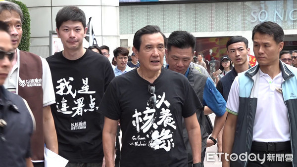 馬英九、臺北市議員候選人李柏毅30日號召民眾參與以核養綠“公投”聯署。(圖片來源:臺灣“東森新聞云”)