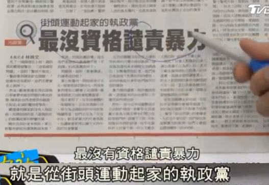 臺灣媒體評論也表示,對于暴力全世界都可以批評,就是民進(jìn)黨沒這個資格,因為你就是靠這玩意上臺的。