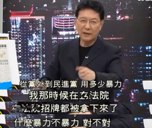 臺灣媒體人在節(jié)目中分享自己的從政經(jīng)歷,當(dāng)年民進(jìn)黨鬧起來的時候,“立法院”的招牌都被摘下來了,還有臉批“暴力”?
