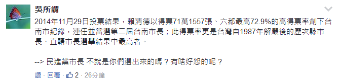 而在心疼之余,也有人認(rèn)為,這些選民是“自作自受”,賴清德的臺南市長,蔡英文的臺灣地區(qū)領(lǐng)導(dǎo)人,不都是源自他們對“詐騙集團(tuán)”至死不渝的愛么……