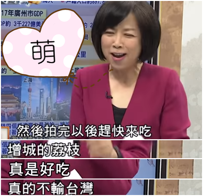 節目中,黃智賢還特別提到一個“小花絮”,采訪廣州臺商時,她竟被一盤荔枝“迷住了”。