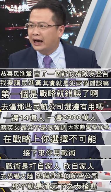 “這不是報復,是自取其辱”!淡江大學全球發展學院長包正豪指出,外籍航空公司是商人,一定看市場哪邊大就往哪發展,現今大陸的經濟發展有目共睹,就算14億大陸人中持有護照者僅占5%,那也是臺灣2300萬人口的三倍,臺灣的市場就是比大陸小,“交通部”此做法根本無法威脅外籍航空公司,只會害到臺灣旅客。