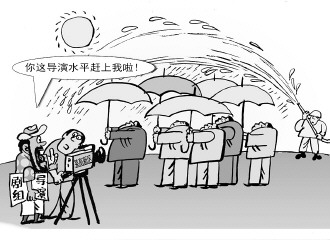 日前有網友發微博稱,四川樂山用水槍制造領導冒雨視察工作的場景,并附有現場照片。微博涉及的樂山高新技術產業開發區作出回應稱,該微博反映的場景確有其事,但并非是視察工作,而是拍攝制作宣傳片,“冒雨工作”是拍攝機構創意(9月16日《京華時報》)。