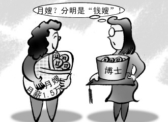 不過,這種“沒價值”的比較,倒是可以引出關于月嫂職業發展前景的問題。月嫂這一職業除了“吃青春飯”外,還面臨著一個職業上升空間有限的“瓶頸”問題。短時間內看,月嫂薪水較高,但這種高薪并不具有可持續性。更重要的是,月嫂的薪水雖高,但并非月嫂本人的純收入。因為,月嫂要“掛靠”月嫂公司,作為公司職員,她拿的是公司給的固定工資,而月嫂固定工資和購買月嫂服務者支付給月嫂公司的月嫂薪水之間的差額,是月嫂公司的收益。因此月嫂的高薪,實際上在月嫂和公司之間強弱對比之下,很多都轉化為月嫂公司的經營利潤。這意味著,在月嫂高薪的背后,還涉及一個巨大的市場利潤份額,在月嫂公司和月嫂之間進行合理分成的問題。(志靈)